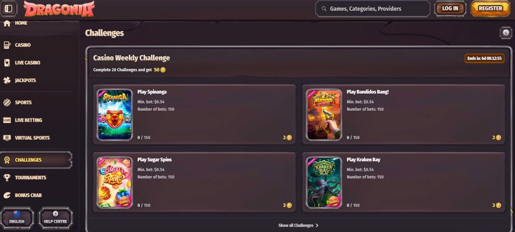 Dragonia Online Casino is best suited for Kiwi players who enjoy interactive features and frequent bonuses. The site includes daily prize drops, mission-based challenges, and tournaments with major prize pools, making it appealing to players who like a more game-like, goal-driven experience rather than just spinning slots.