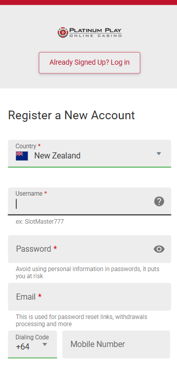 Start by going to the home page of Platinum Play Casino. The "Sign Up" button is easy to see and is usually in the middle. This button was made to be easy to use, so it's simple to start the registration process.