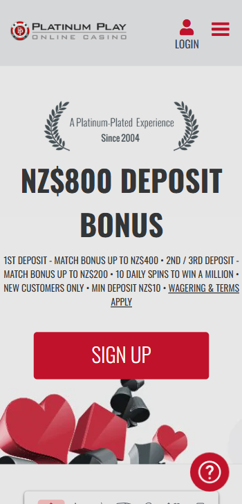 The welcome bonus will be instantly added to your account after your deposit has been handled by the app. Platinum Play Casino has a 100% match bonus offer of up to NZ$800, which is spread over your first three deposits.