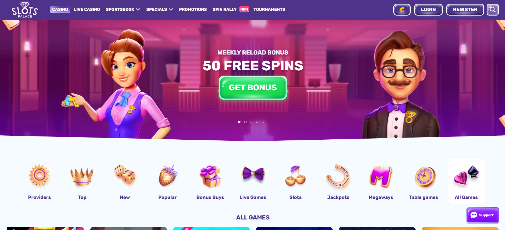 Online casino Slots Palace provides both casino games and sports betting. It collaboratively works with reputable software companies like NetEnt, Pragmatic Play, and Evolution Gaming and provides a safe gaming environment. Players in New Zealand choose the site because of its wide range of games, reliable payment options, and amazing promos.