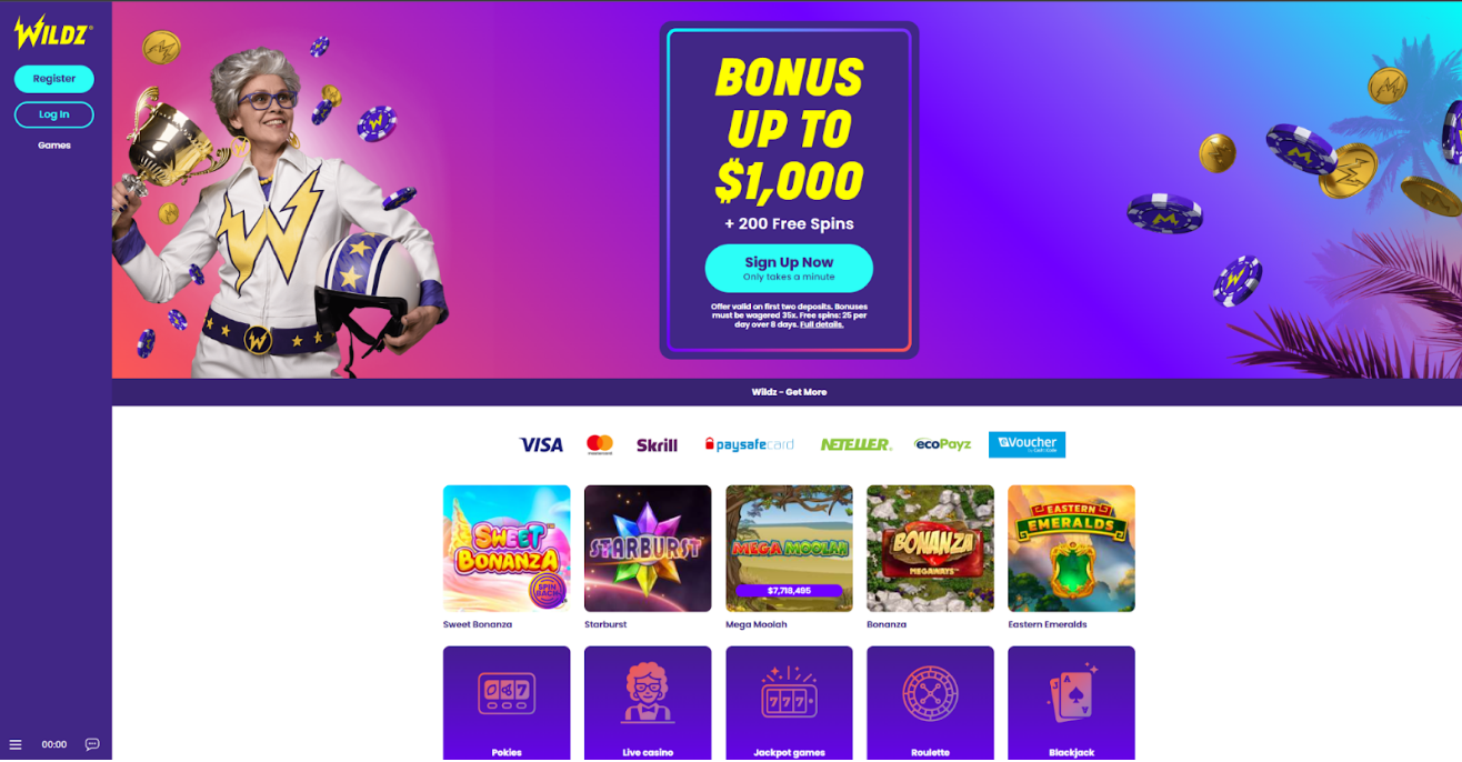 With over 2,000 games, Wildz Casino offers something for every player, from pokies to live dealer games and jackpot slots.